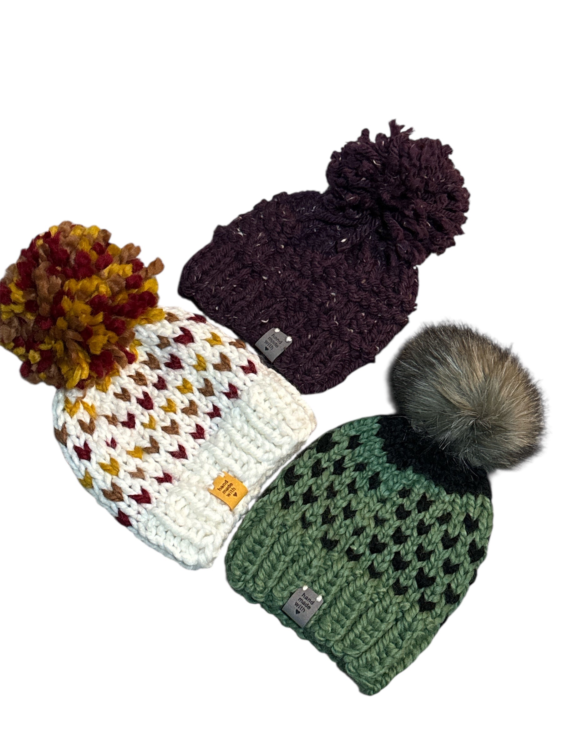 Muhkeasta villasekoitelangasta neulotut suloiset Muhkupipot.
