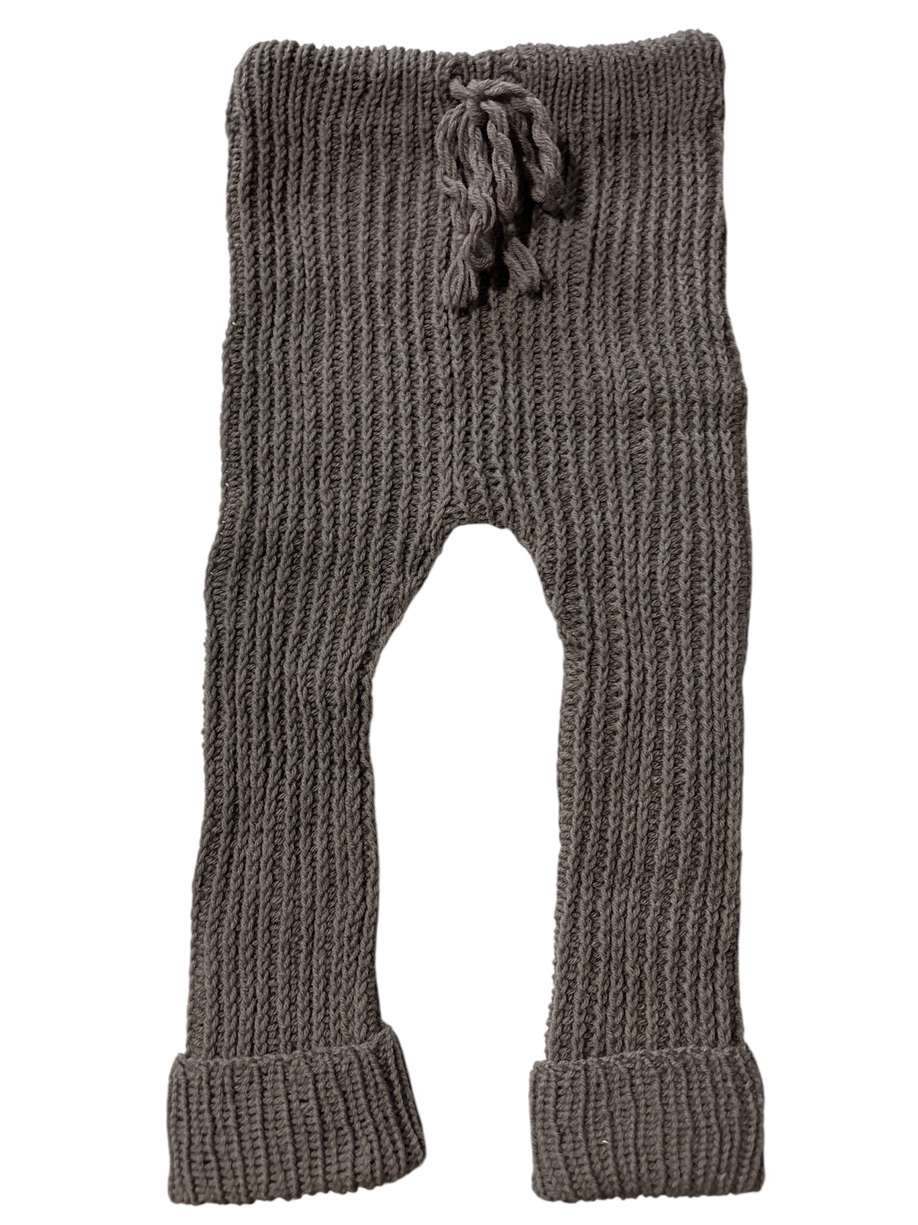 Joustavat ribbityyliset neulotut merinovillahousut. Vyötäröllä kiristysnauha.