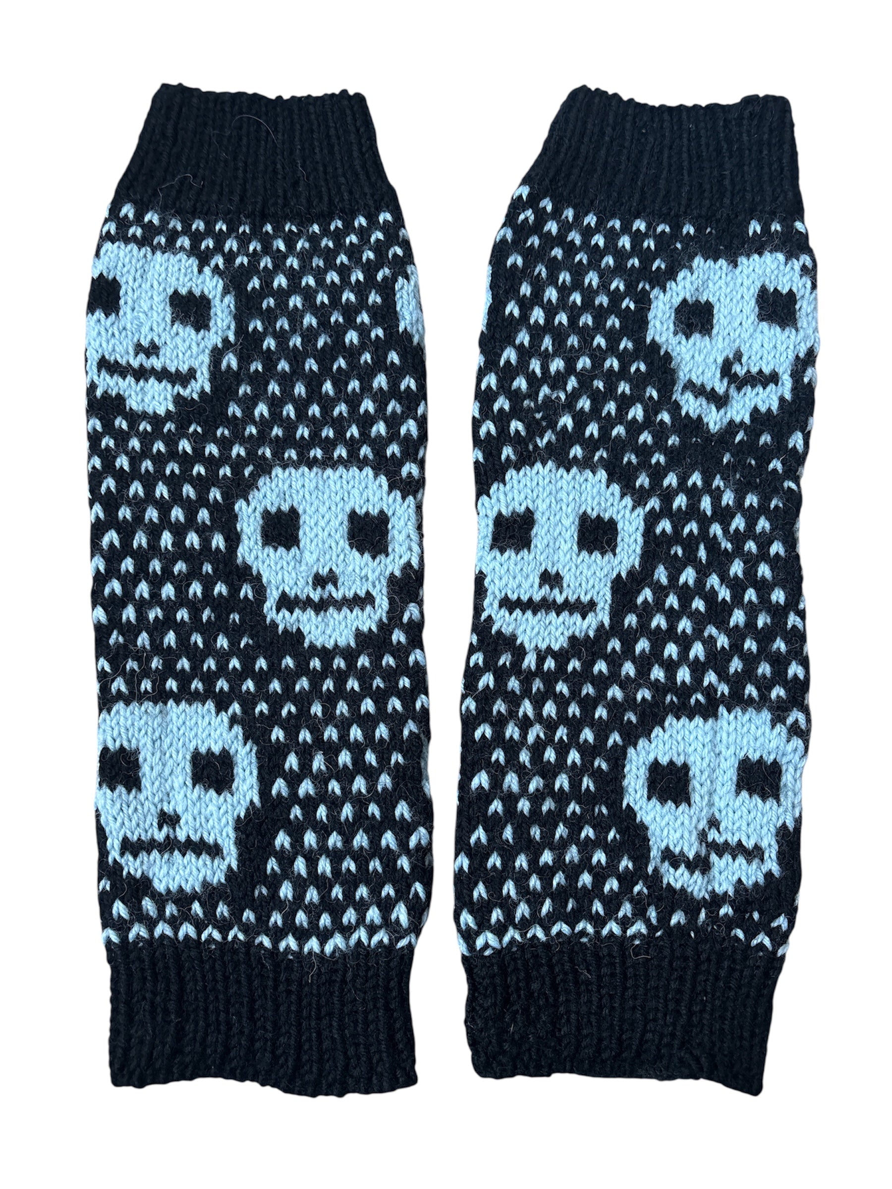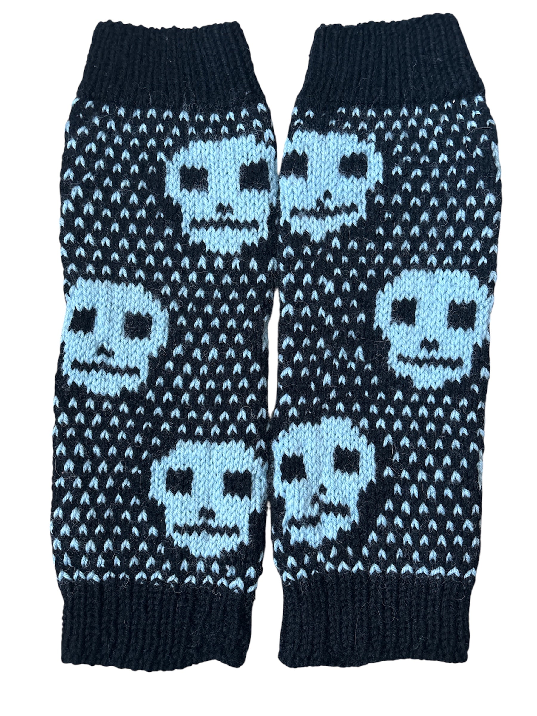 Musta pohja ja vaaleansiniset pääkallot. Suora malli; ympärys 24cm