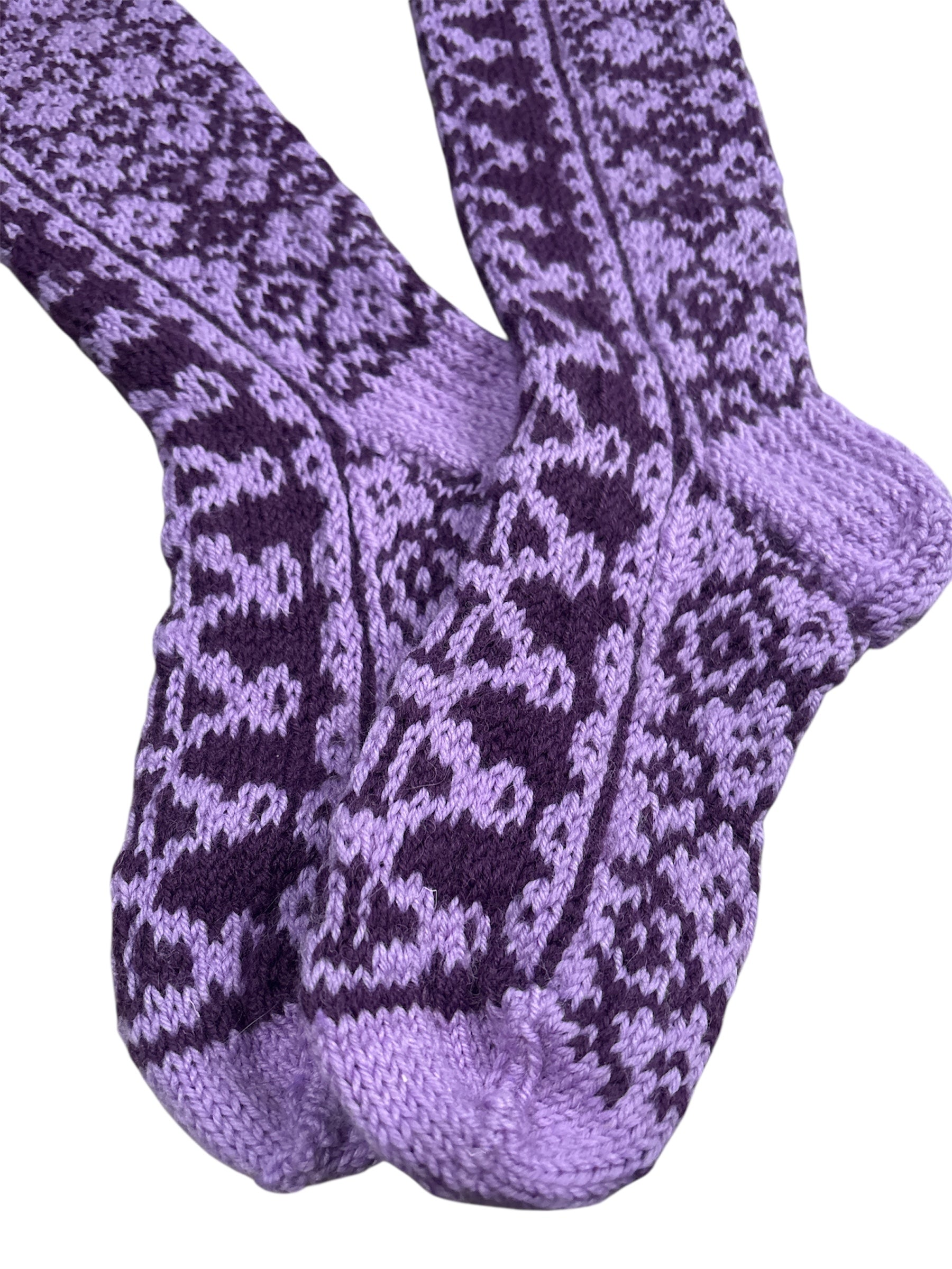 Polven alapuolelle ulottuvat villasukat. Vahvistettu kantapää.