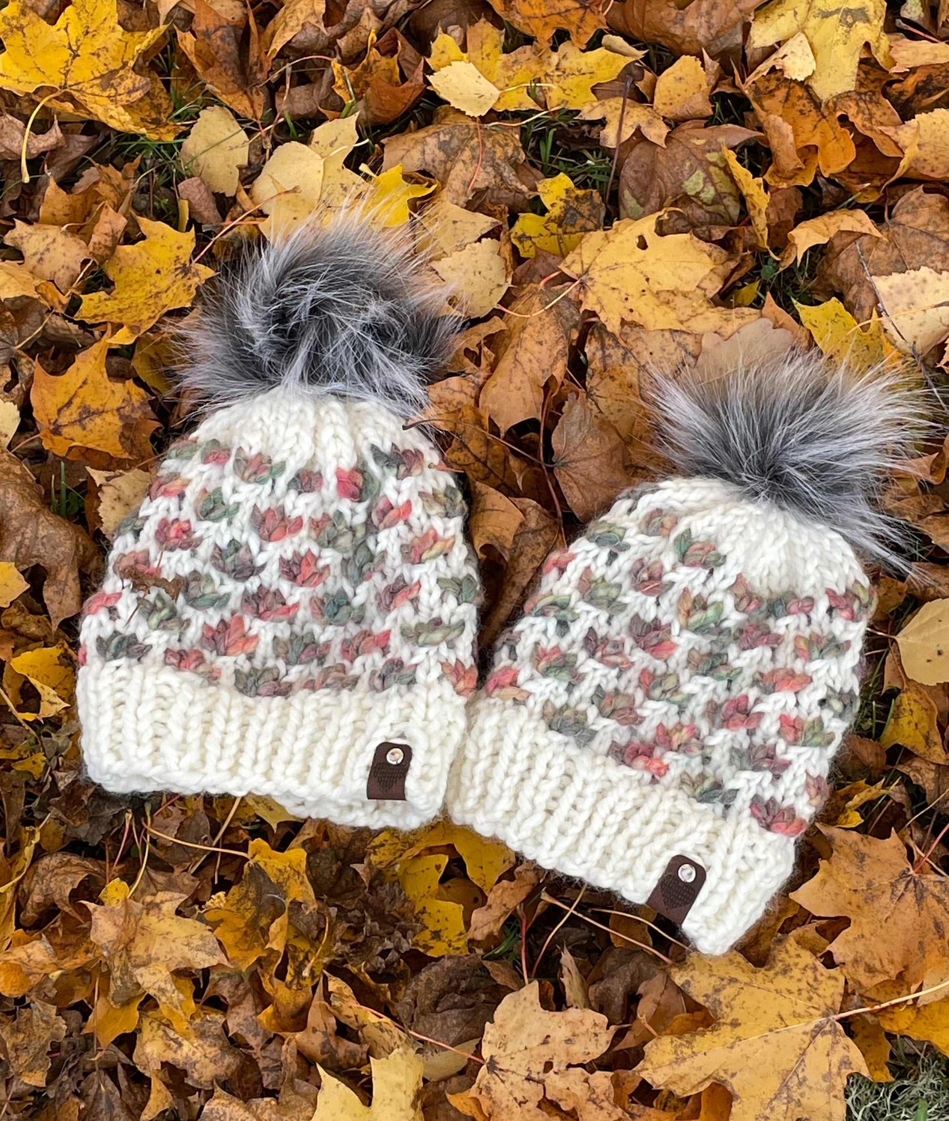 Muhkeat ja pehmeät neulepipot kauniilla kirjoneulekuviolla. Turkistupsu keinoturkista.