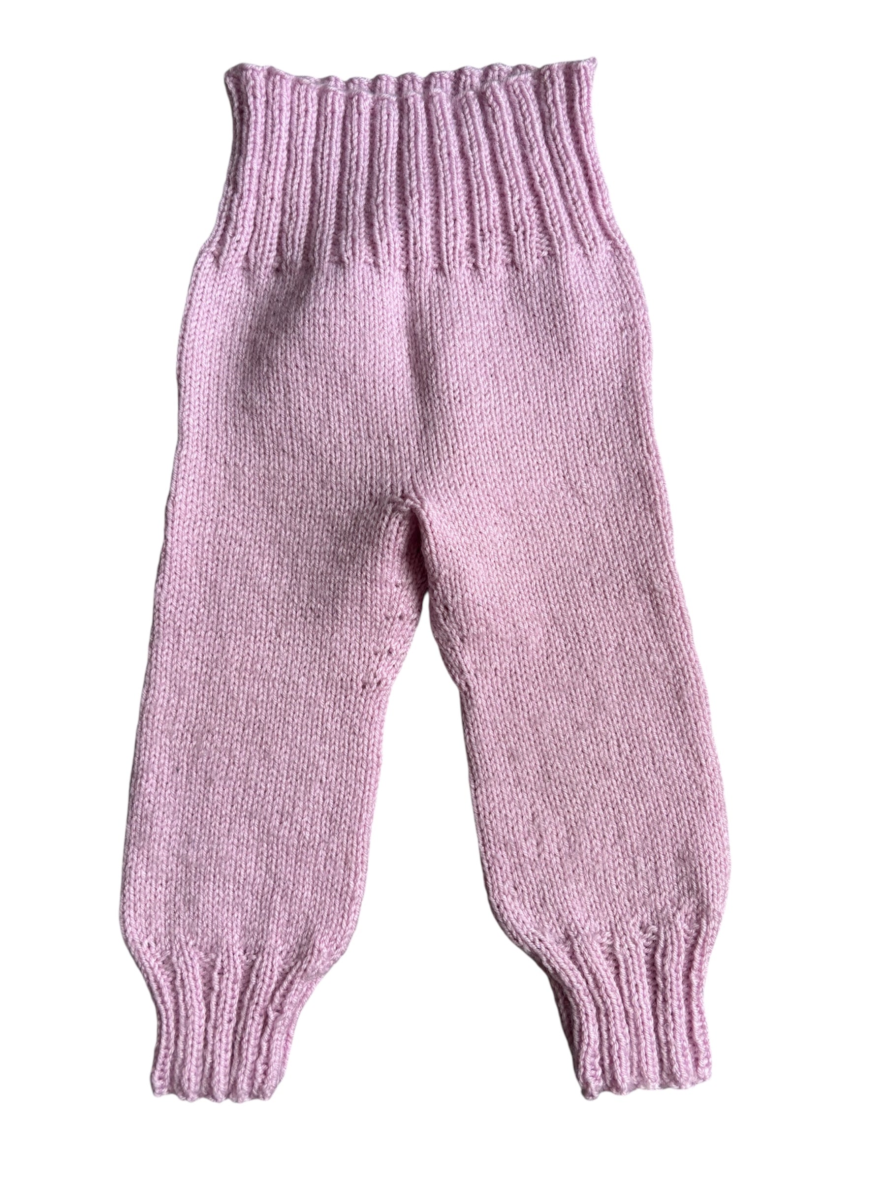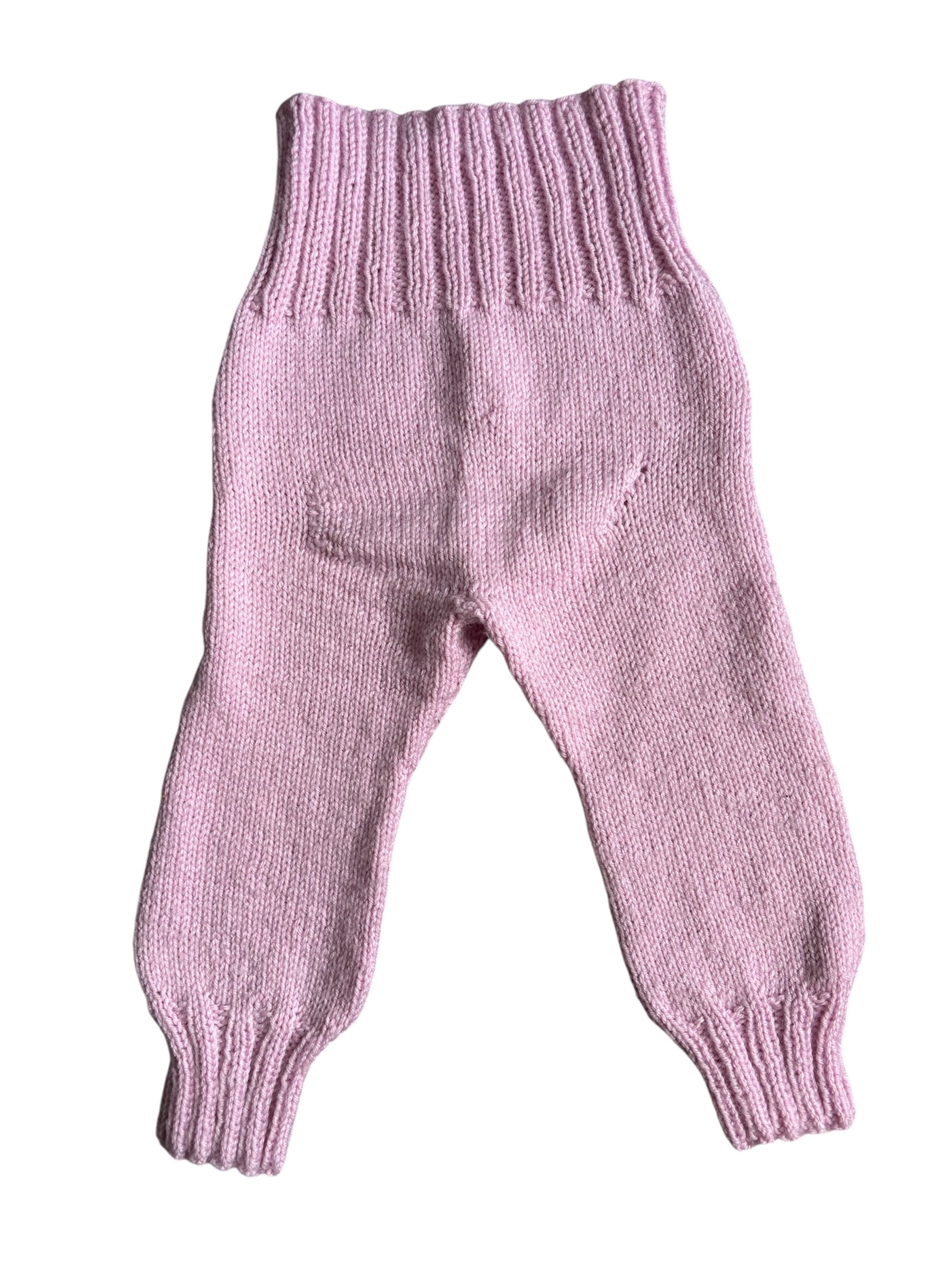 Korkeavyötäröiset villahousut. Neulottu erittäin pehmeästä villalangasta. Ei kutita lasta. Pyllyssä tilaa vaipalle levennyksellä.