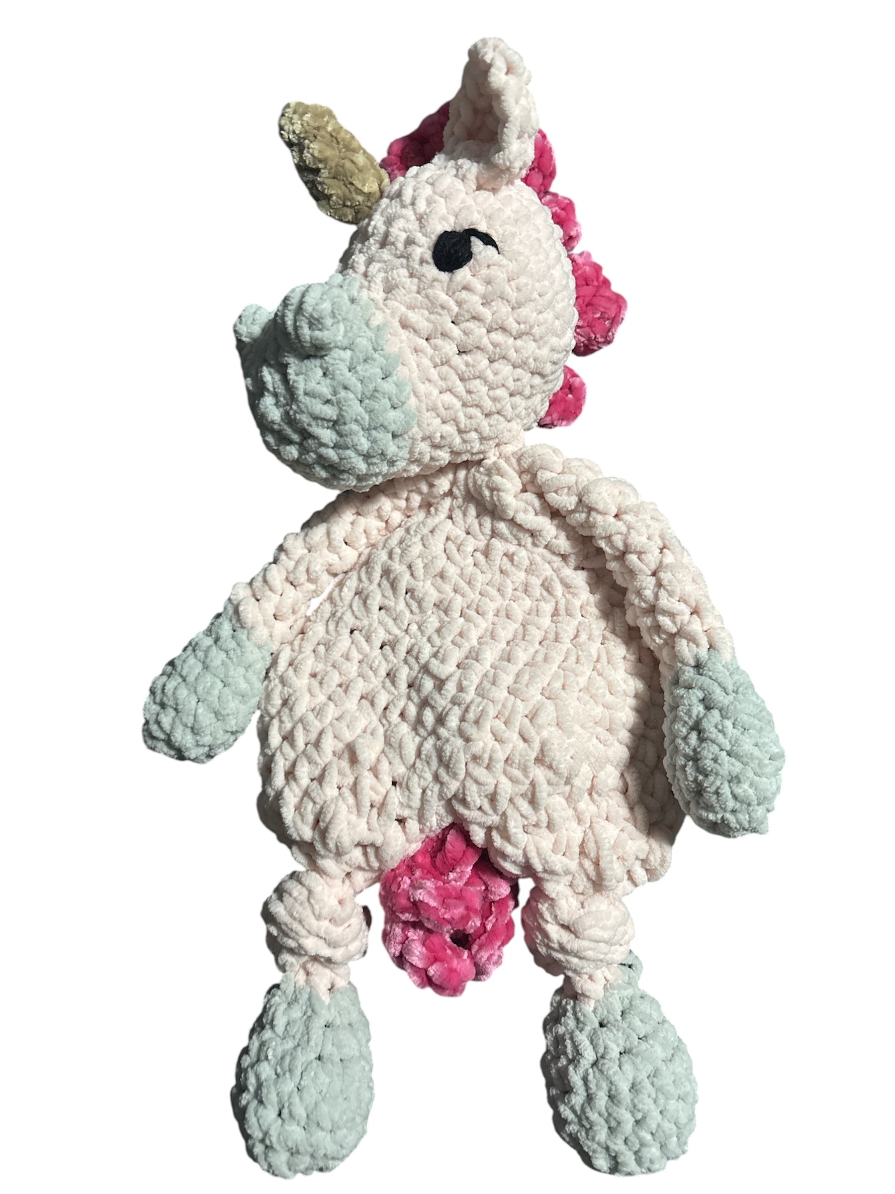 Samettilangasta virkattu pehmeä yksisarvinen.